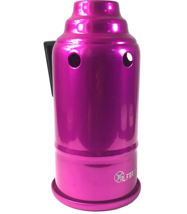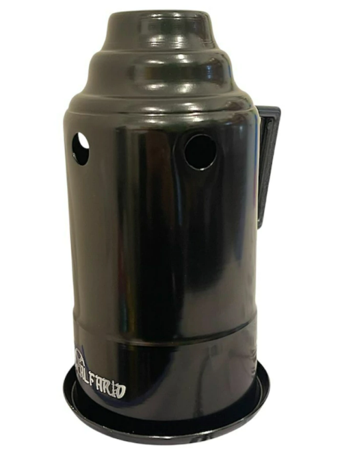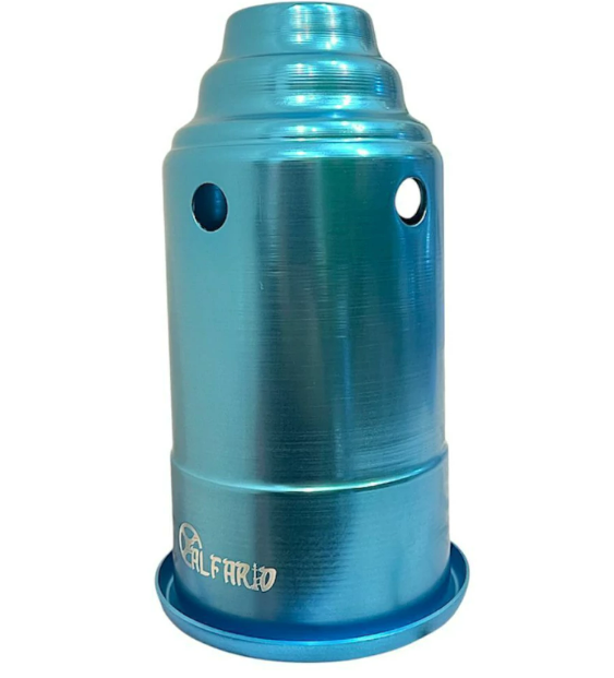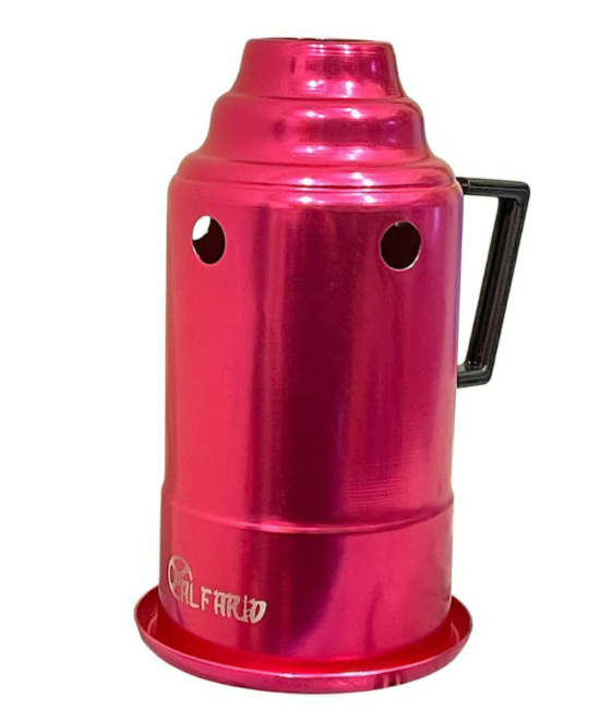Abafador para narguile marca Al Farid, modelo KAAB, em alumínio com pintura anodizada. 11 cm de diâmetro e 23 cm de altura. Com cabo/alça em baquelite, não esquenta.