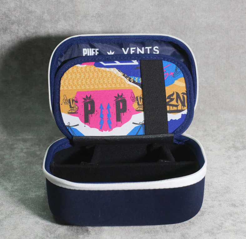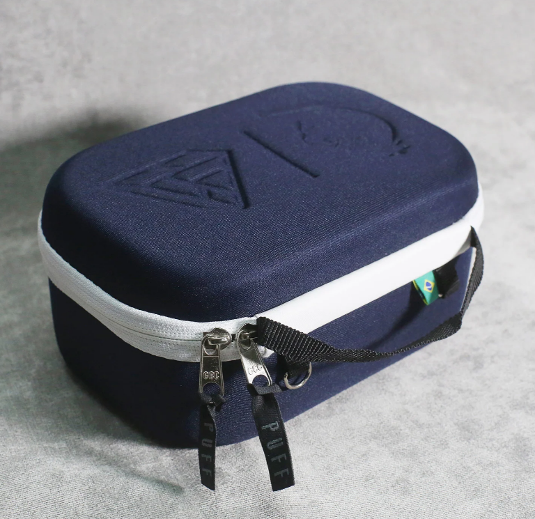 Os novos Puff Cases chegam com uma presença inconfundível. Apresentamos o azul marinho profundo, contrastado com o acabamento limpo e moderno dos zíperes e bordas em branco.